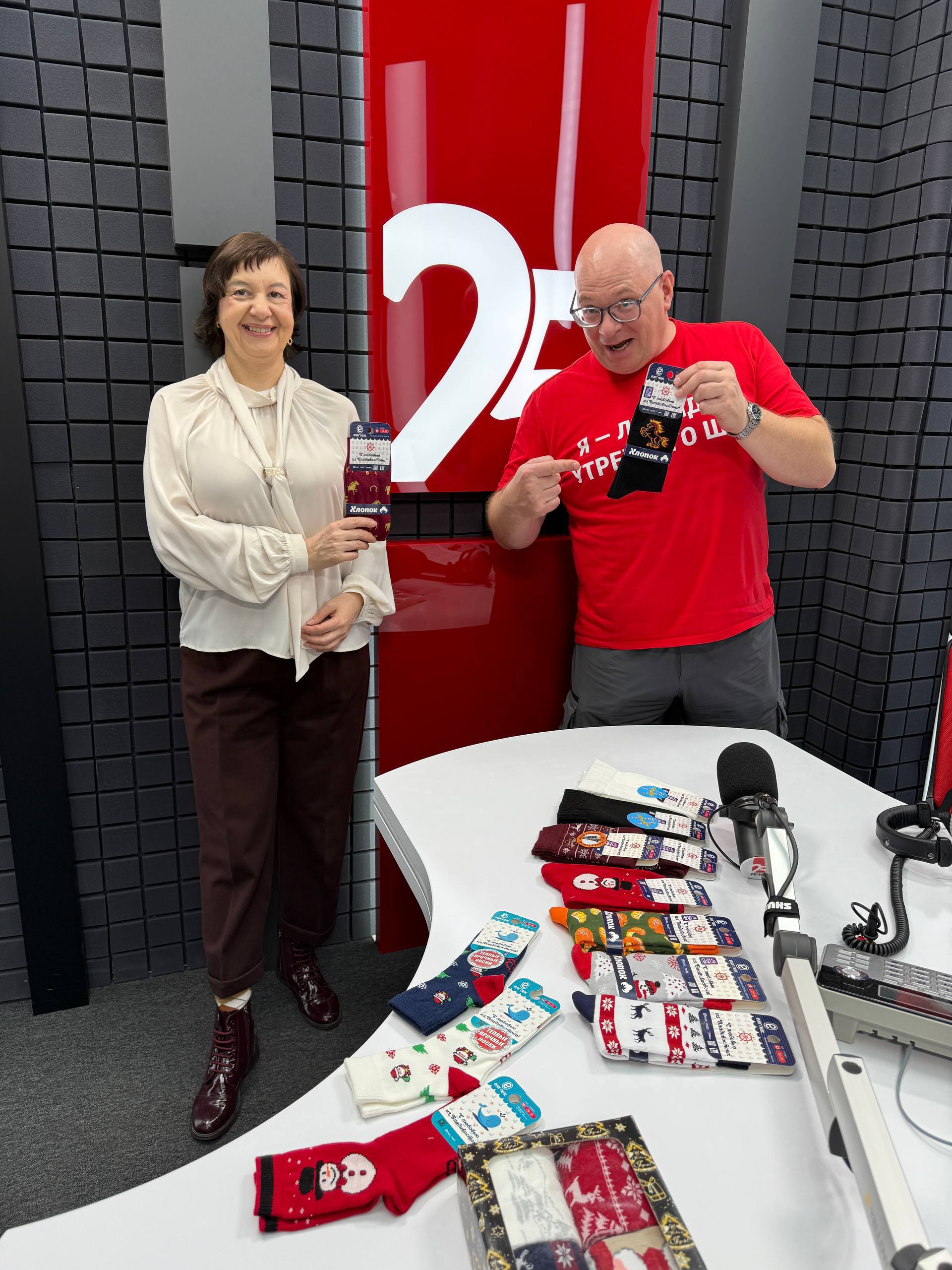 Мы связали для команды телеканалов уютные носки с их фирменной символикой. Выглядит супер, согласны?