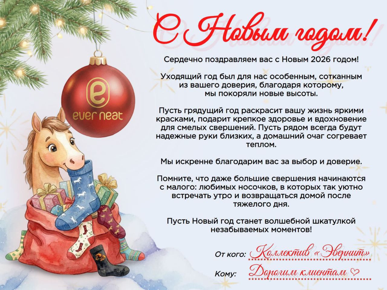 Фабрика носков «Эвернит» желает вам в новом году здоровья, счастья и благополучия.